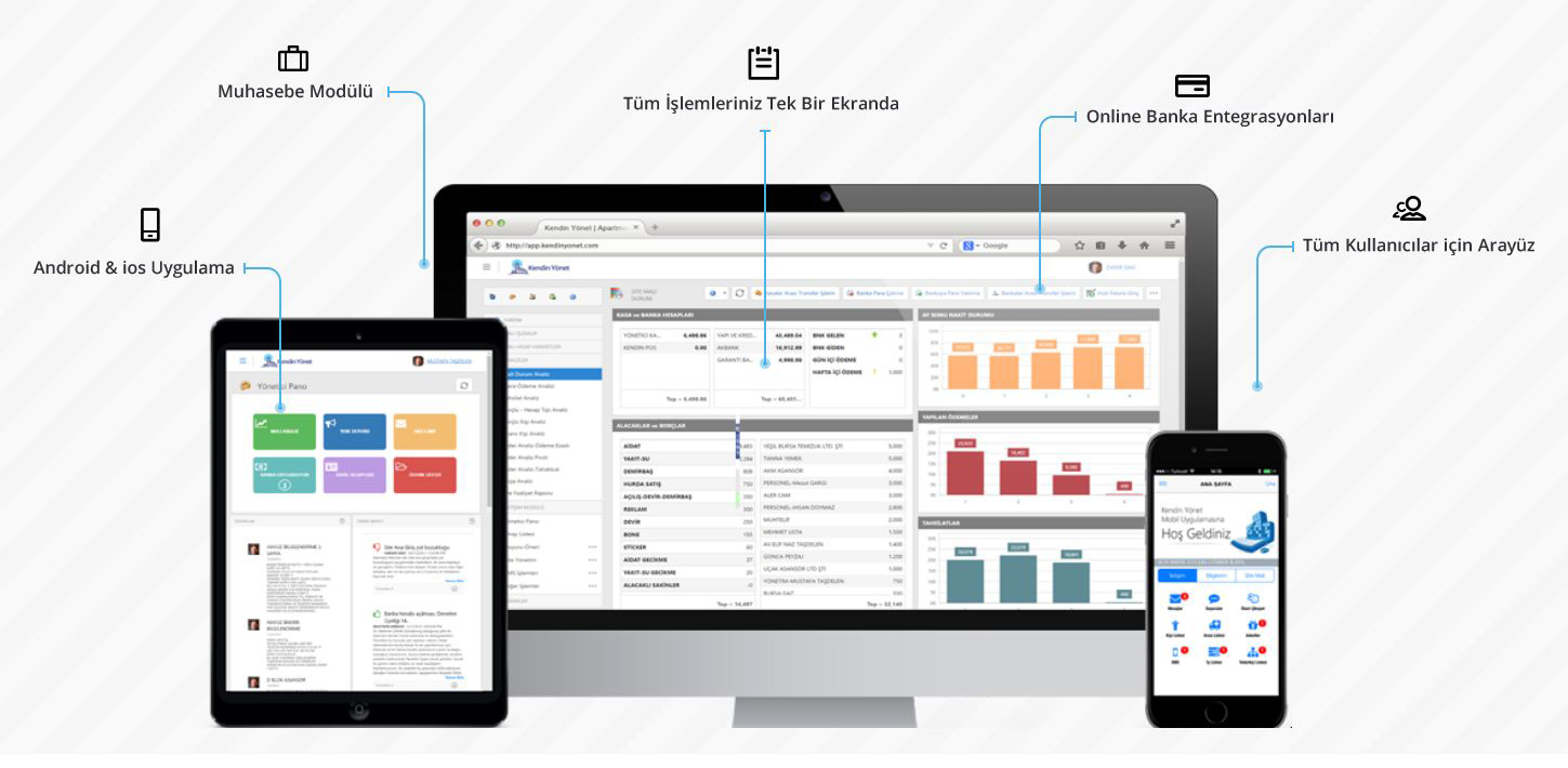 KendinYönet, Site sakinleri ve site yönetimi arasında sosyal ve mali ilişkileri düzenleyen bir yazılım çözümüdür.